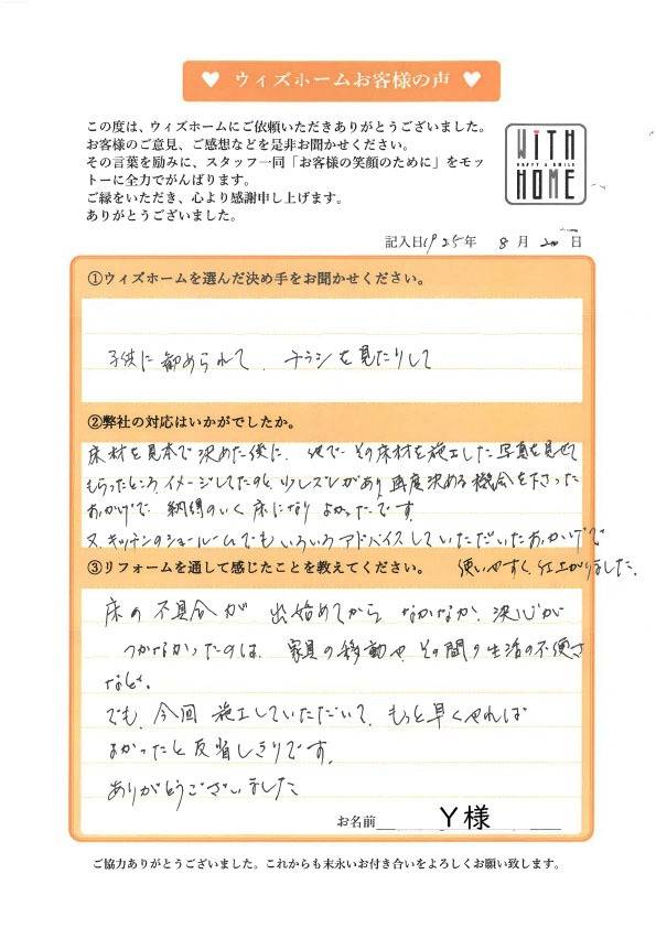 お客様の声 犬山市 Y様(キッチン、床、窓)