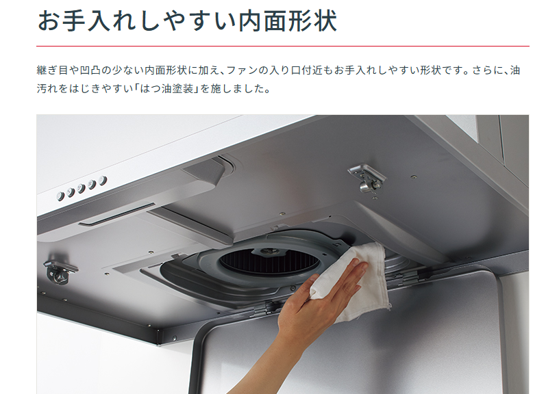 レンジフードもほこりが溜まりやすい形状でお掃除が大変でした。