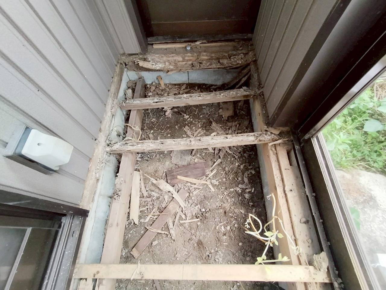 床をはがすと、白アリの被害があり、土台が腐って落ちてしまっていました。