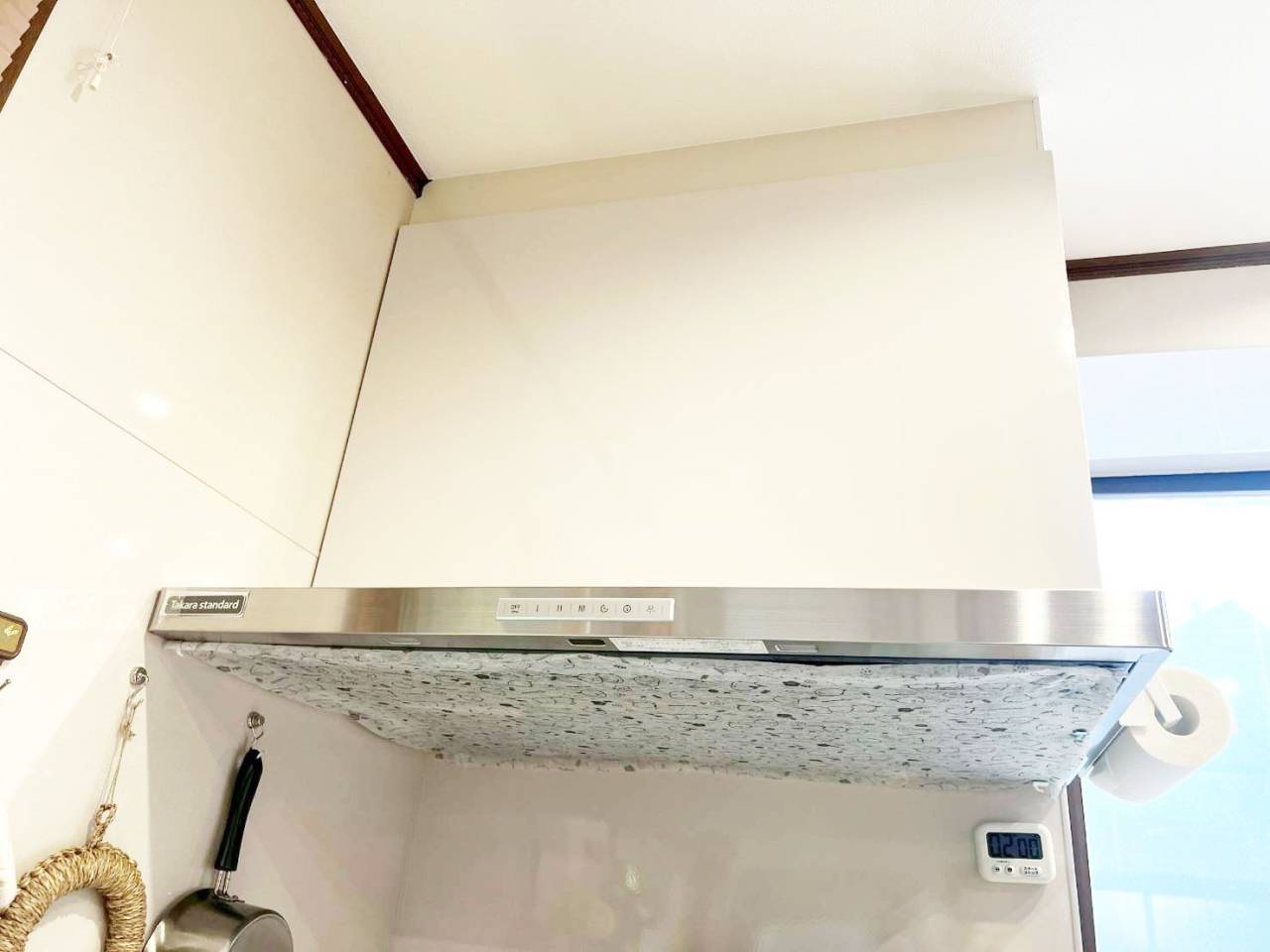 新しいレンジフードです。お掃除がしやすい仕様になりました。