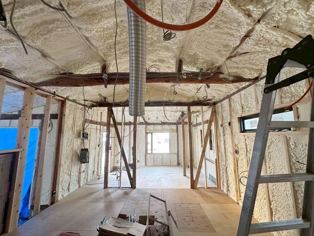 吹付断熱で冬も夏も快適に。耐震工事も行っていますので、安心です。