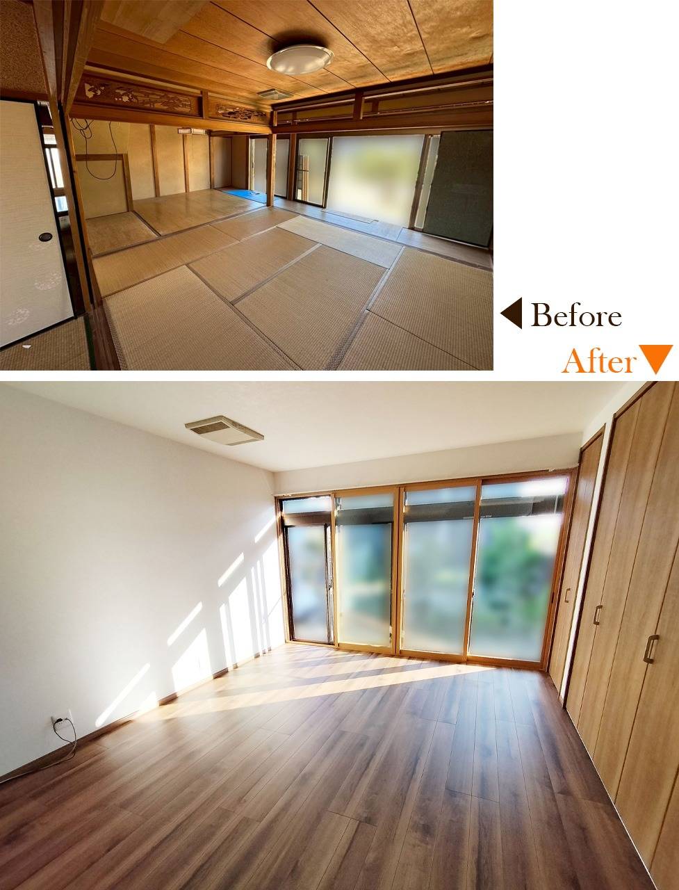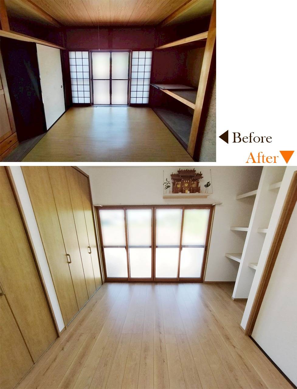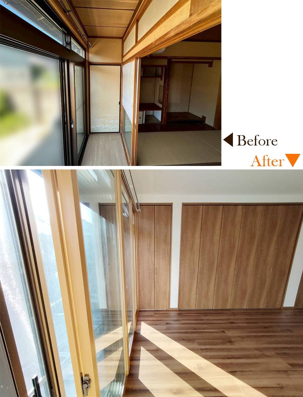 施工内容 | 畳→フローリング、収納、クロス、断熱工事、内窓、他 |