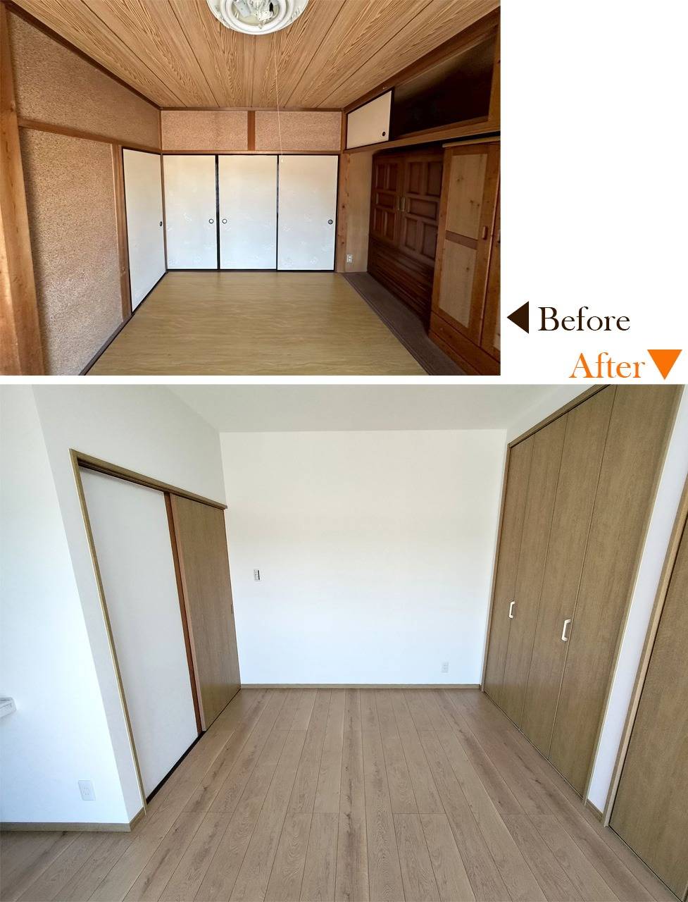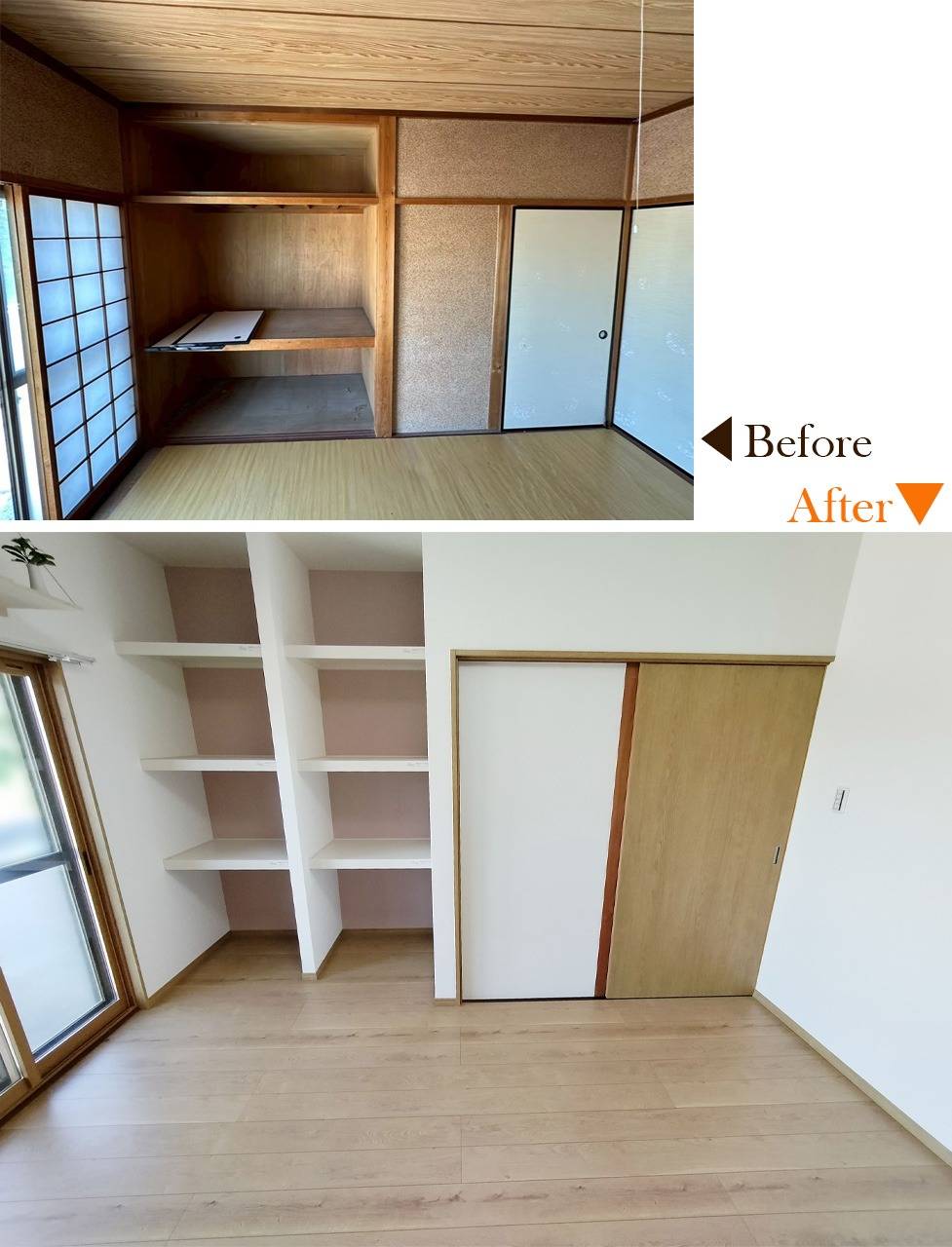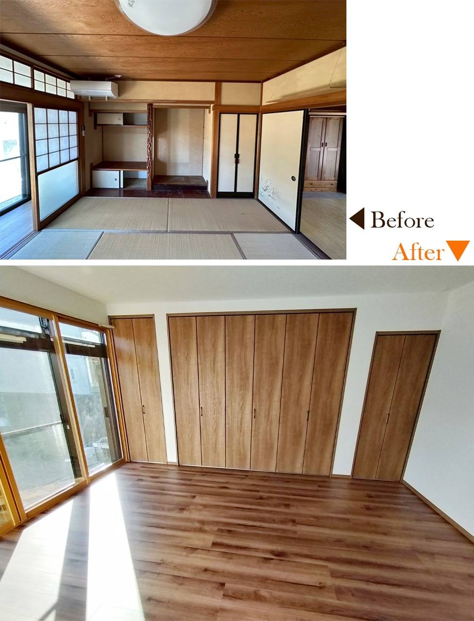 施工内容 | 畳→フローリング、収納、クロス、断熱工事、内窓、他 |