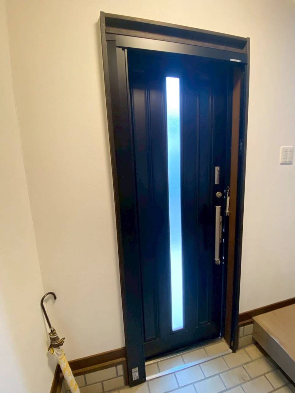 モダンなデザインの採風機能(換気窓)と断熱性を両立した玄関ドアにリフォーム。