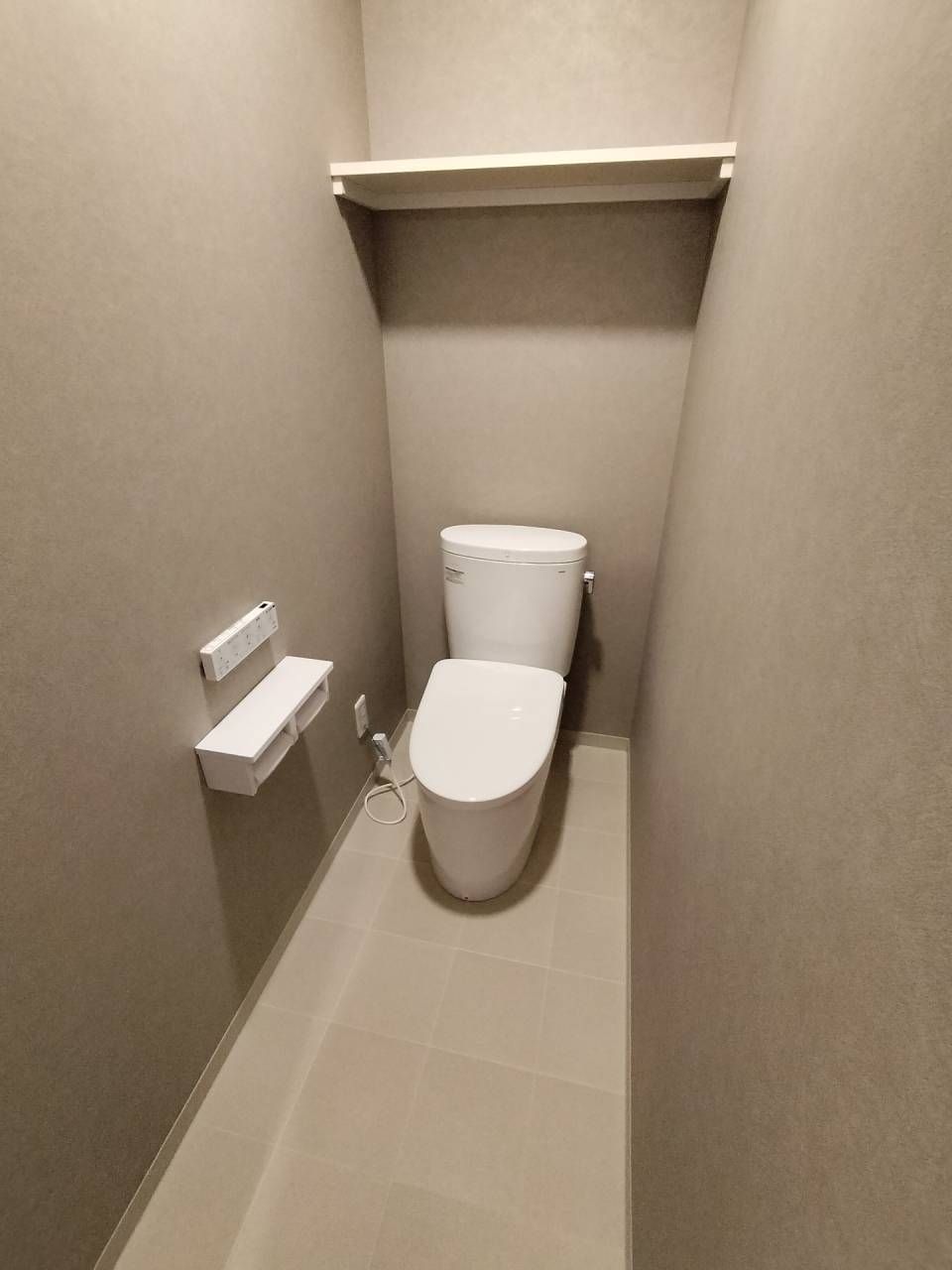 マンションフルリノベで、他のお部屋とのトーンも合ったグレーで統一したトイレ空間